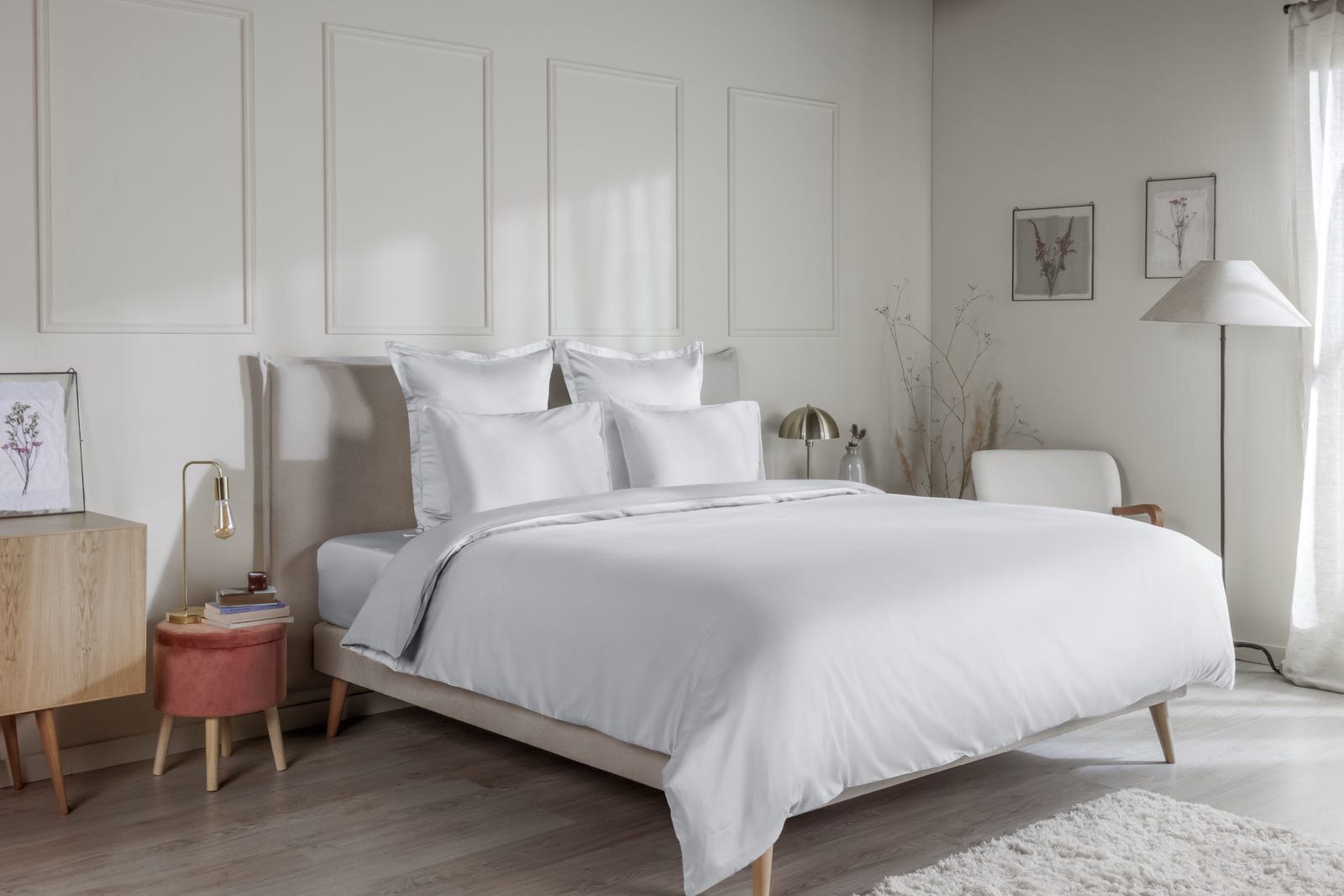 Tissé en percale de coton à 100 %, notre matériau thermorégulateur est extrêmement respirant et vous maintiendra au frais et sans transpiration la nuit. Sa finition mate et subtile offre une sensation de douceur agréable.